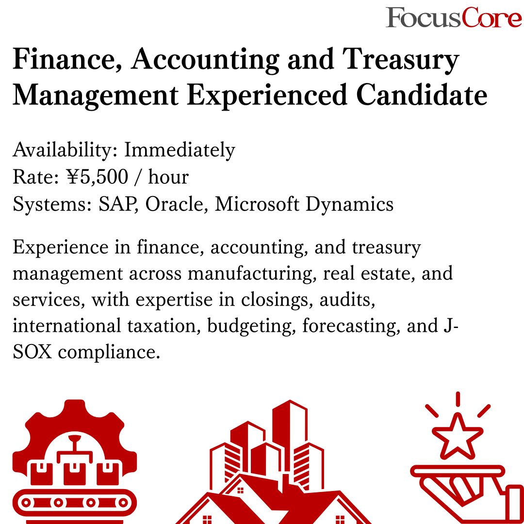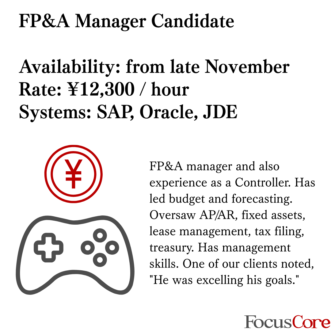 FocusCore partners with global companies for recruiting bilingual Country Managers, CFOs, Supply Chain Directors, HR Directors, and Marketing Directors. If you have a critical position to fill in Japan, let us know or for more information CONTACT US. |